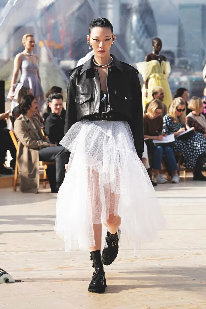And say hello once again to the biker jacket – the once ubiquitous model-off-duty staple looks fresh again paired with a tutu skirt, of course.