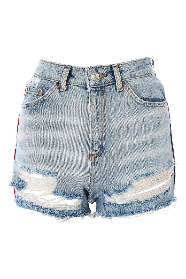 Try: Moto American Flag Splice Mom shorts, $76.90, Topshop