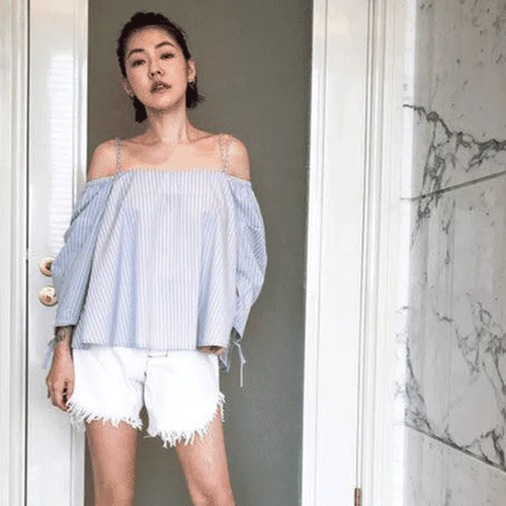Which is why we’re not surprised to see popular Taiwanese host Dee in a pair of white denim shorts with fringed hems.