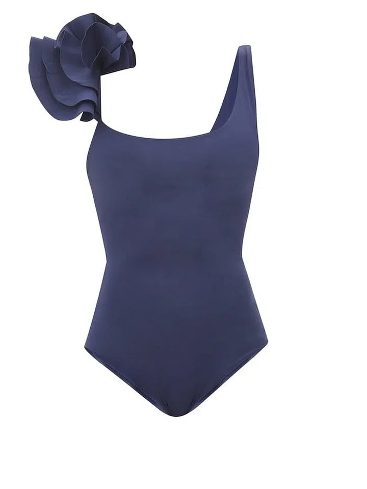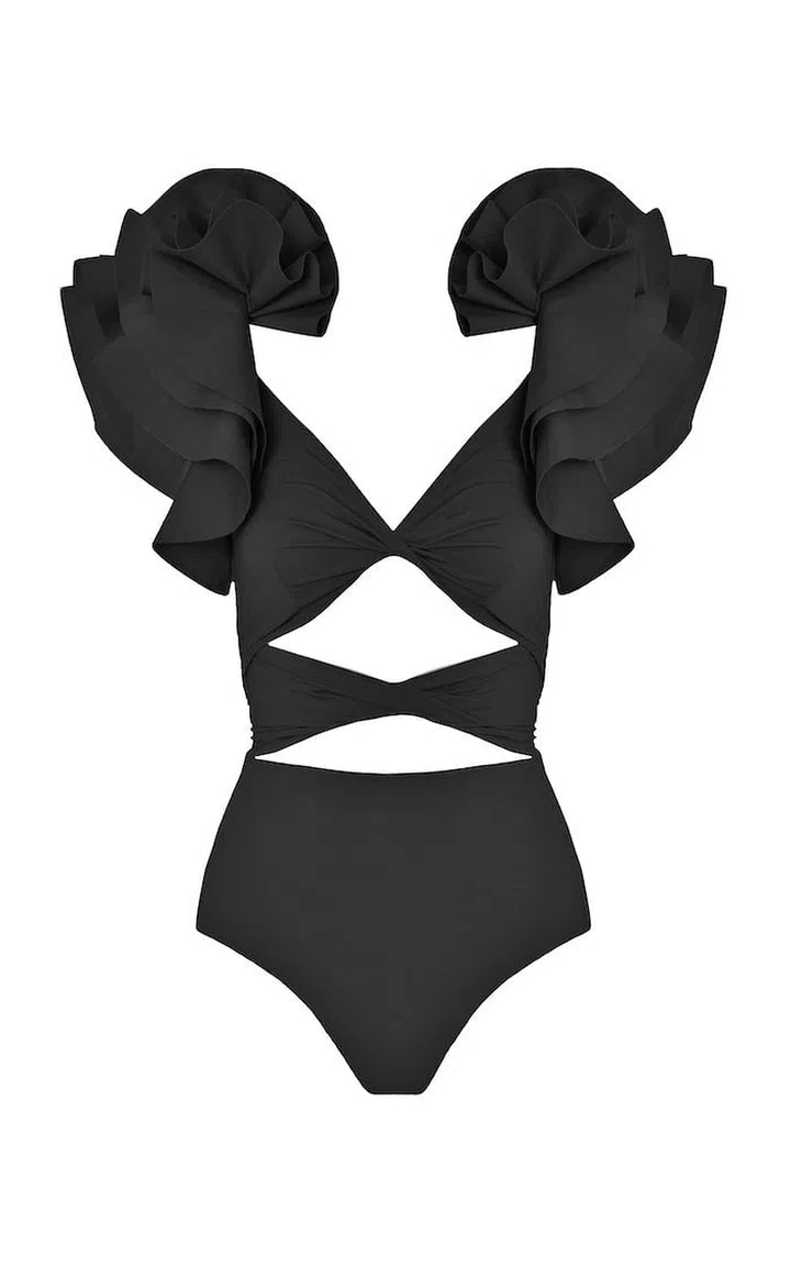 Tasi Ruffled-Shoulder Square-Neck Swimsuit, $309, Maygel Coronel at Matchesfashion