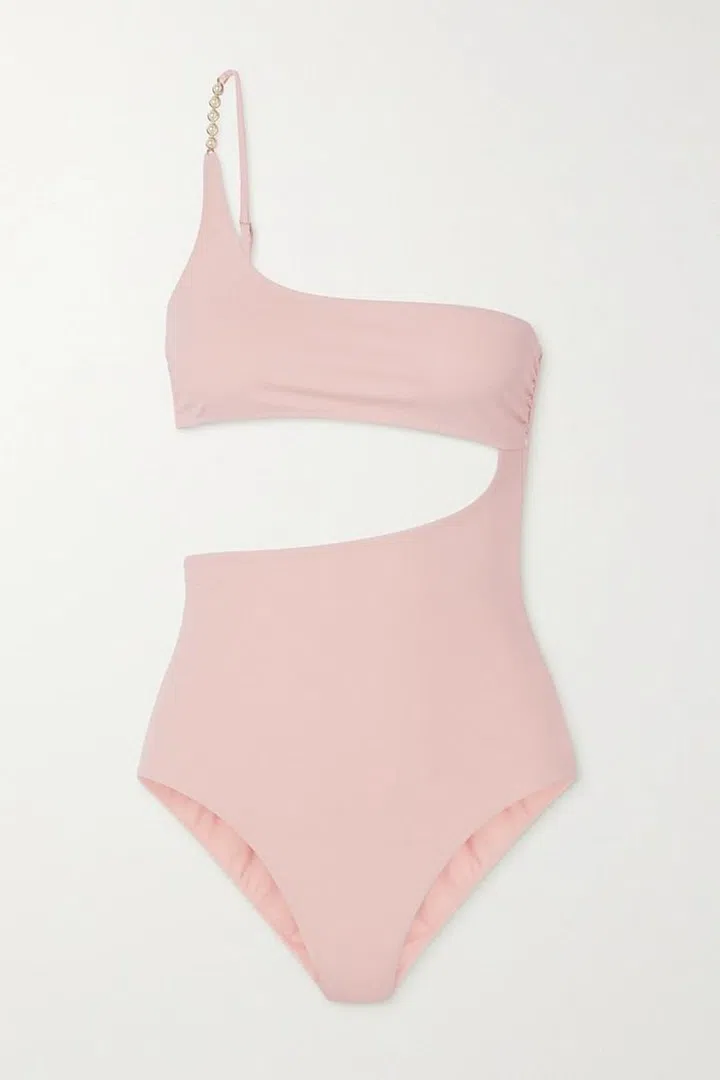 Donia One-Shoulder Embellished Cutout Swimsuit, $505, Agent Provocateur at Net-a-Porter
