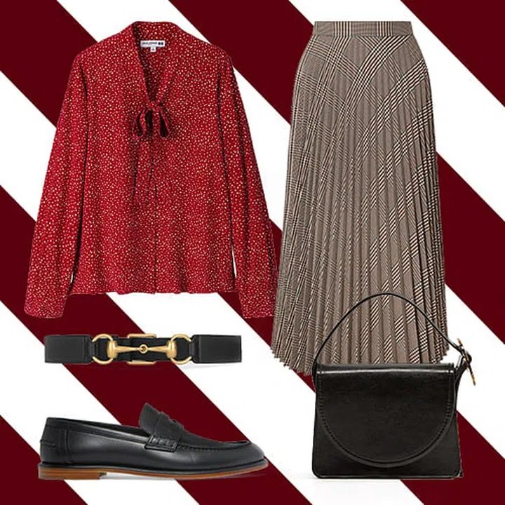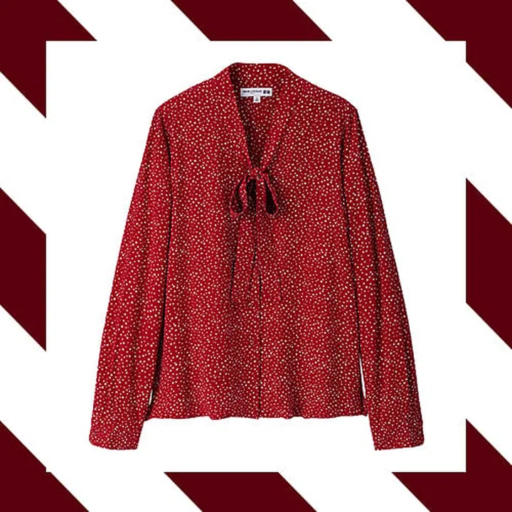 The pussybow blouse is a wardrobe essential for the bourgeois girl. Instead of choosing your usual safe route (aka blacks or blues), opt for one that’s fashioned in a bright colour, like this red number.