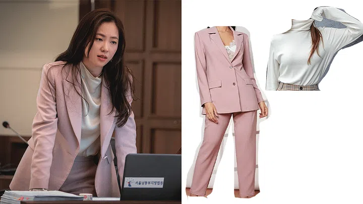 Get Hong Cha Young’s pink blazer suit and turtleneck shirt.