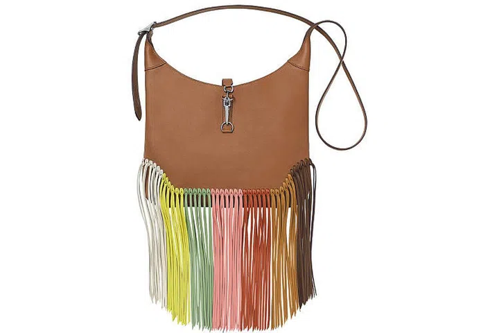 This bohemian messenger bag debuted in 1958 at the cusp of the hippy movement and derived its name from swish or “anate” animation of the fringes. The silhouette is inspired by the shape of a horse trough and the horsebit snap hook clasp is a nod to its equestrian inspiration. This year’s update features a fun design with 44 hand-knotted fringes in a rainbow-effect. Leather aficionados will be glad to know that this piece uses the extra supple Swift calfskin which was introduced in 2005 to replace Gulliver calfskin which was discontinued in 1999. Known for its soft tactile finish, Swift calfskin also comes with a soft reflective sheen.