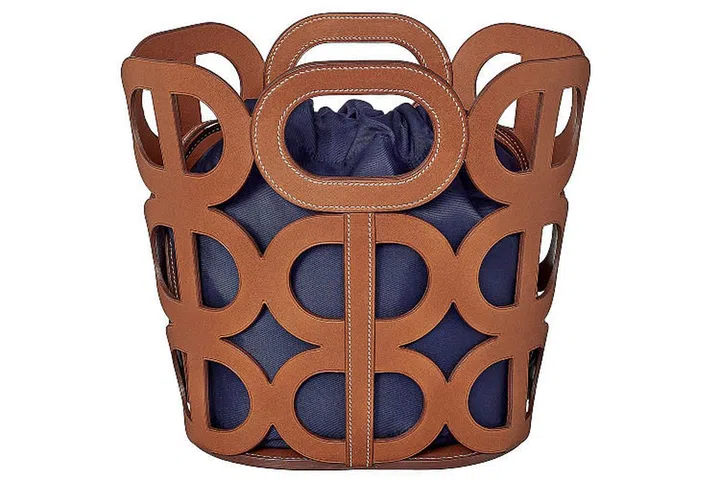 If wicker bags are your thing, then this is an abstract version of the trend. This hand-held piece is composed of individual leather links fashioned after the brand’s iconic anchor chain motif stitched together. Crafted from smooth water-resistant Barenia leather – first used by the maison for saddle-making – the bag is a perfect accessory for the beach. A silk pouch printed with a design by Italian-born designer, artist, illustrator and author Gianpaolo Pagni completes the piece.