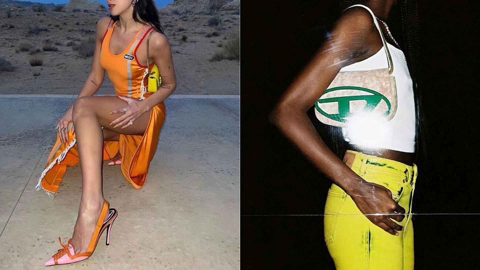 Fellow Y2K fashion lover Megan Thee Stallion exuded big demeanor in the brand’s cult logo ribbed top. While on tour in South America, Miley Cyrus strutted her metallic blue 1DR bag on stage to coordinate with her leggings and top “catsuit” combo. Newly minted Broadway babe Pamela Anderson wore the brand’s viral smash hit pantaboot for a PAPER photoshoot. A fellow endorser of Y2K fashion, Dua Lipa served “It” girl cool in Diesel’s denim two piece set and again with the brand’s logoed red bag. As a brand that generations grew up with, its revival among Gen X and millennial celebrities is proof that the brand’s cross generational appeal is not going to leave the spotlight.
