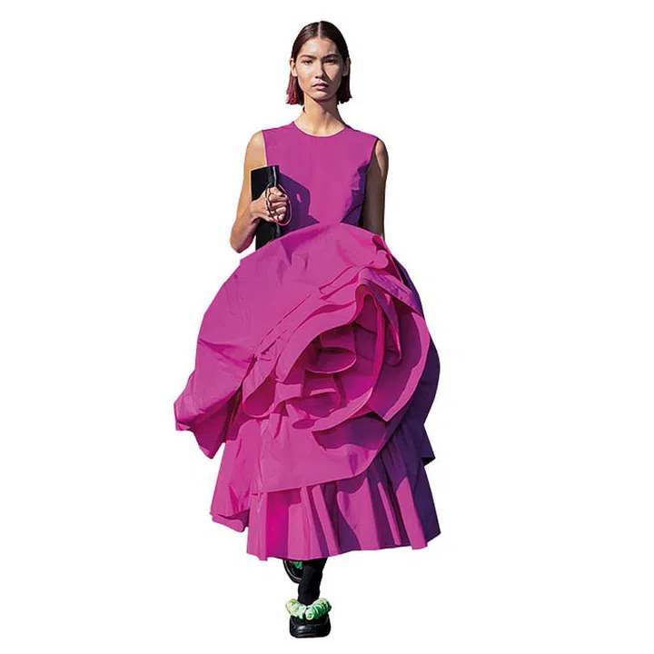 These looks may have been inspired by the pannier, a hoop skirt popular in the 17th and 18th centuries, but today’s take on the undergarment structure is more edgy than fancy. Before you dismiss the trend as more “costume-drama” than practical, hear us out. Brands like Victoria Beckham and Roksanda have proved that the look, when reinterpreted into a more subtle silhouette, can be both striking and wearable.