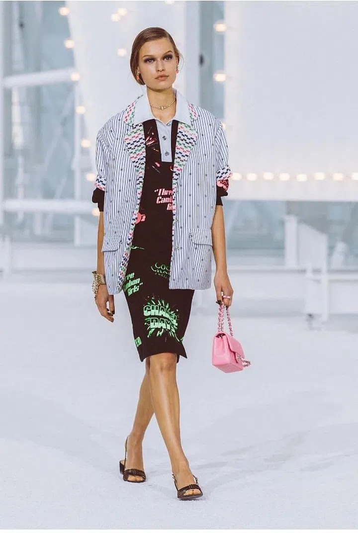 The polo shirt is turned into the perfect weekend dress with prints that echo the typography Old Hollywood movie posters.