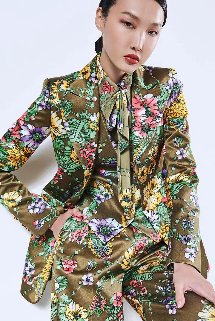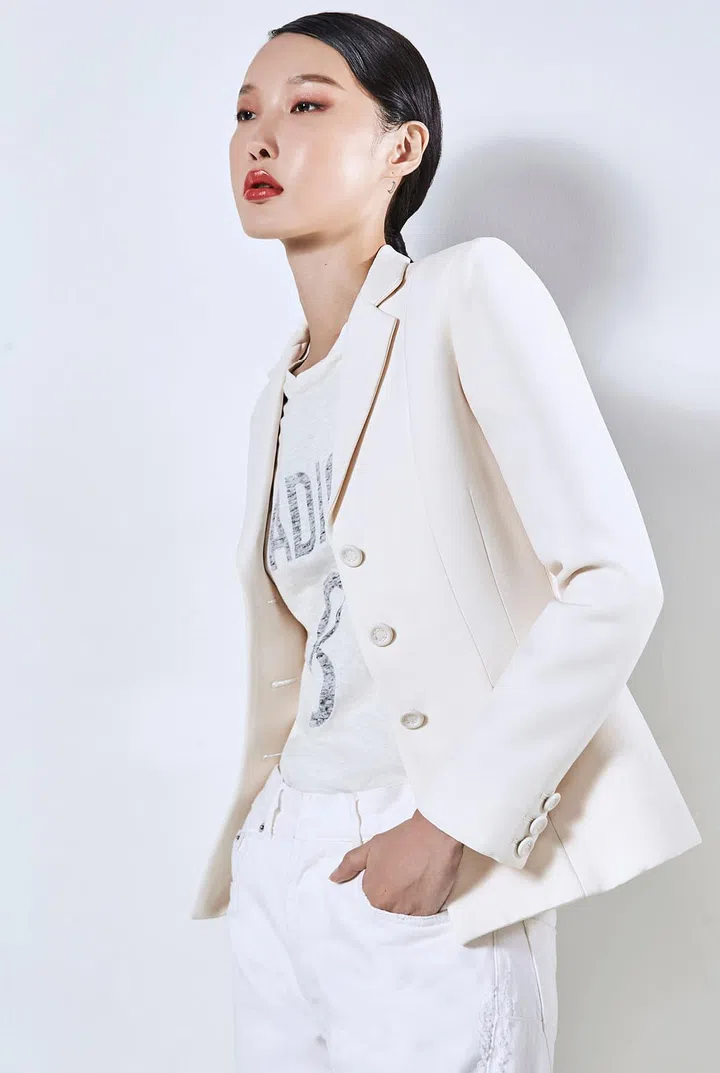 We recommend one in light silk, linen or crisp cotton that emphasises the waist, with eye-catching buttons on the sleeves to inject that element of fun. And don’t forget to play with tonal and textural contrasts. Whether it’s paired with a feminine skirt suit or a slouchy pantsuit, it’s all about you-do-you tailoring now.