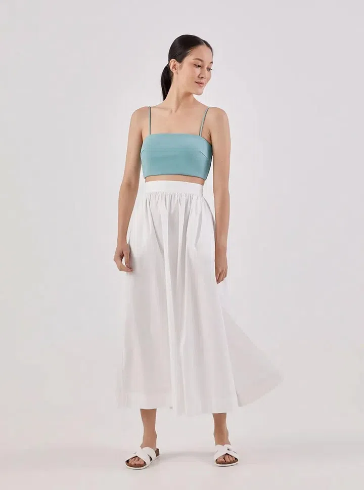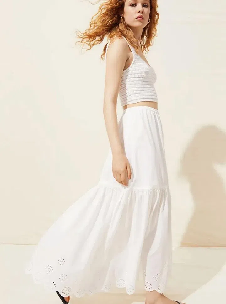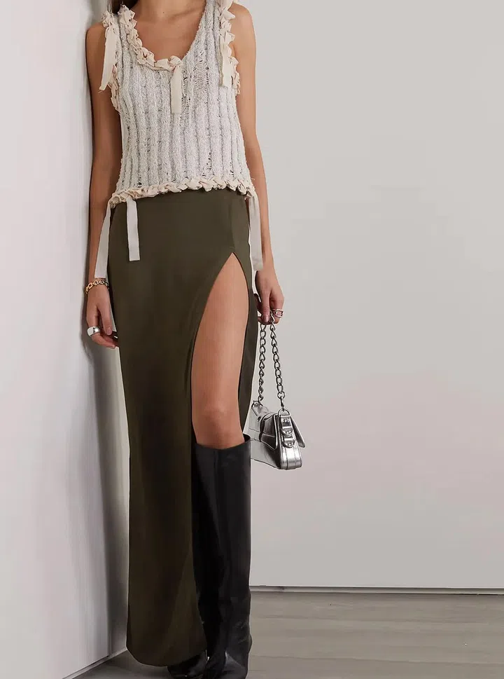 The resurgence of the maxi skirt has started to pick up over the last few weeks and we’ve seen a lot more people opting for longer silhouettes that come in different iterations – from denim to silk, you name it. But what’s interesting is that many are also pairing their long maxi skirts with midriff-baring tops or fitted tanks that work to accentuate their figure – making the maxi skirt the focal point of their outfits.