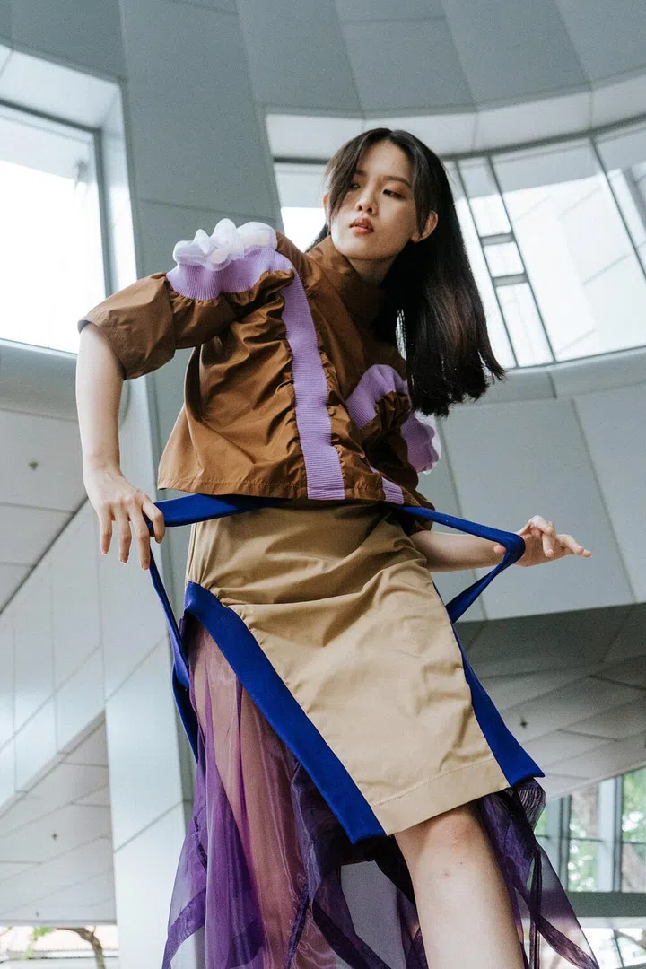 Agnes' collection focuses on functionality, and her garments give wearers the freedom to adjust, detach and interchange according to their preference. There's also the Hydrogel feature in some of her pieces, which aims to keep the body cool in Singapore's sauna-like weather.