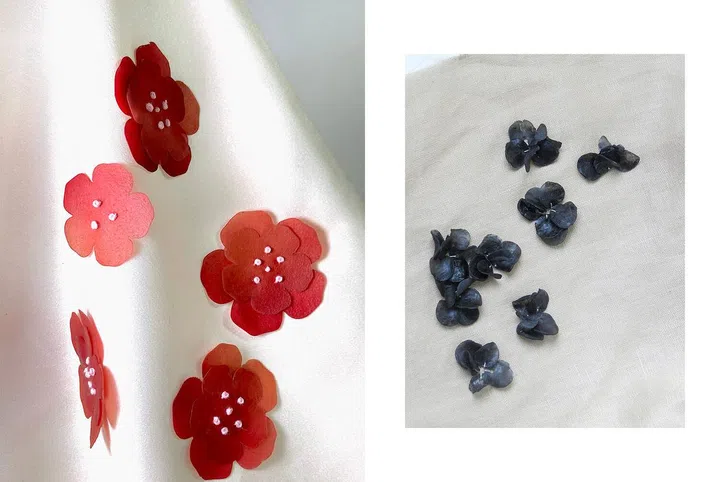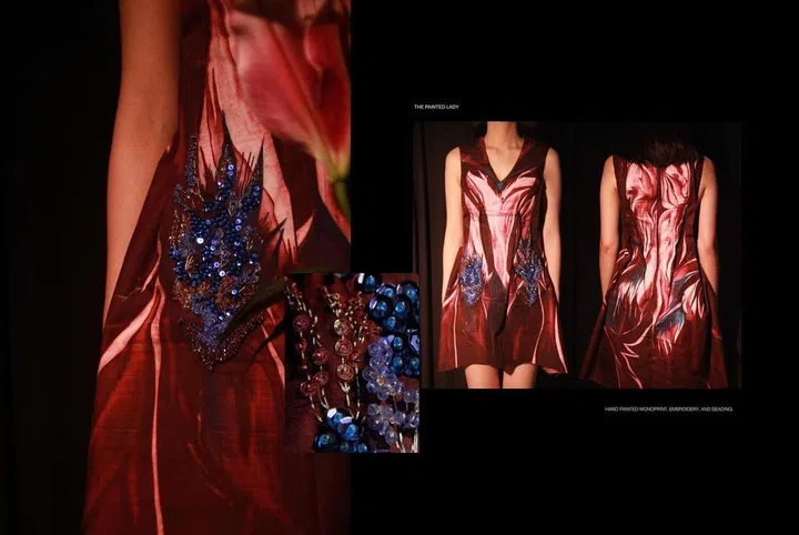 Stefanie hopes that her work can be a form of self-healing. "Night Bloomers is a collection that uses fashion to resolve traumatic experiences such as sexual harassment," she said. The pieces in this collection are inspired by floral still-life paintings that show flowers blooming in dark places.