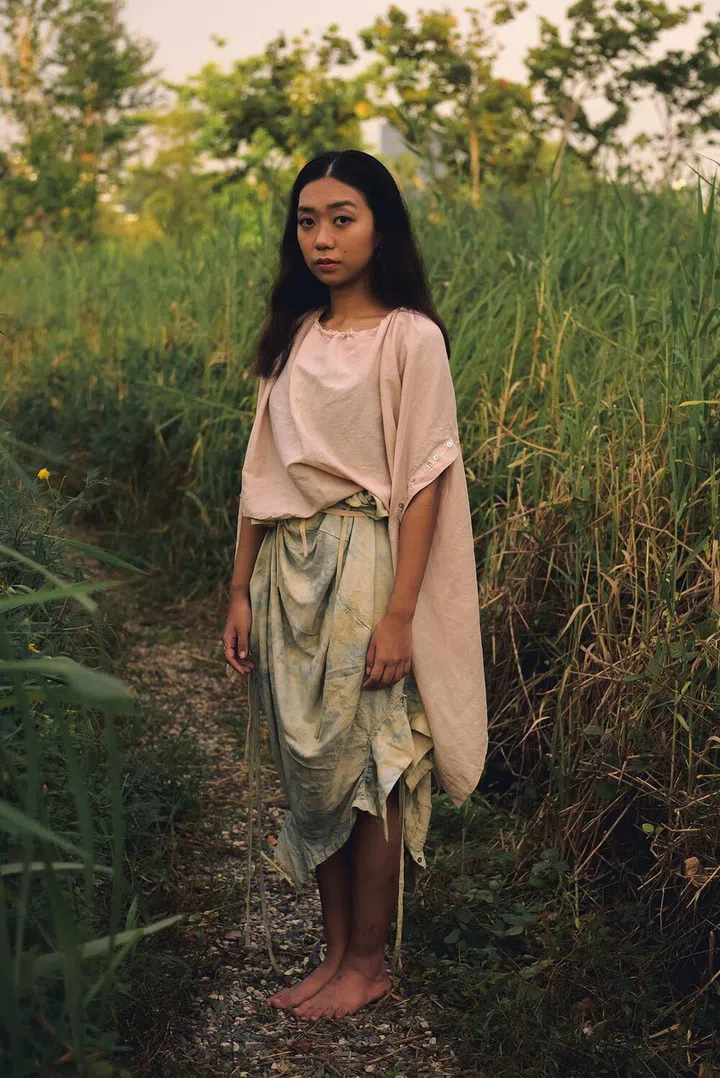 If Kimberly's pieces exude a sense of tranquility, that's because they're inspired by her personal experience of meditation retreats in Indonesia. Made from natural and organic materials, "Satu: Jati Semesta is a collection of wearable forms... that builds a connection between the wearers and makers in fashion," explained Kimberly.
