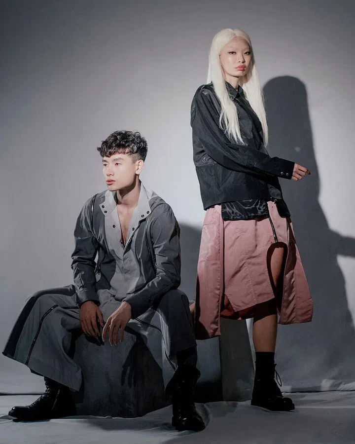 Forget about separate women- and menswear. Justin is driving gender equality through his gender-neutral clothes, throwing out any gender stereotypes that society has on fashion. "Polymorphism is a collection of transformative pieces created with functionality at the forefront," said Justin. "They weave seamlessly into wearers' everyday lives."