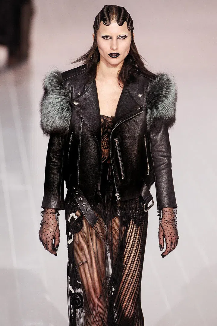 The designers’ favourite cool classic, worn over button-down shirts and pencil skirts or evening slip dresses, adds an instant edgy, fearless attitude to the look.