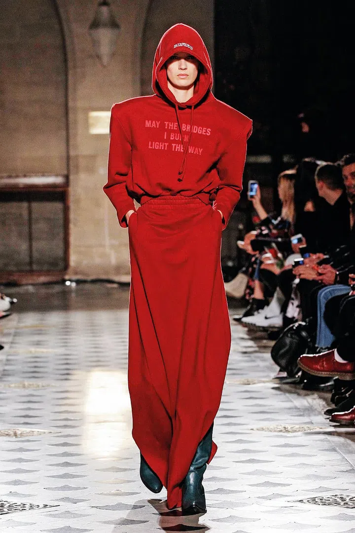 Designers want your casual wear to be different, verging on extreme. Think XXL outerwear like puffer jackets, parkas and coats worn with tailored pants, mismatched leggings with skirts, hoodies with long skirts and Margiela-inspired bold shoulder pads under basic shirts, hoodies, jackets and coats.