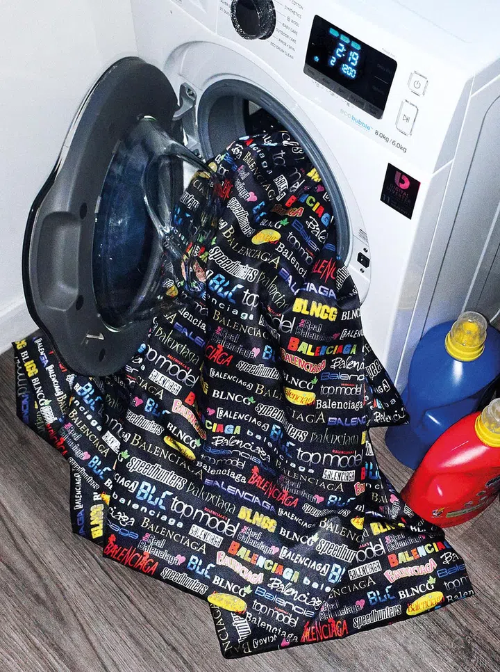 If you're a daredevil, go all out and wear a bold printed number. True to Demna Gvasalia's style, this Balenciaga piece sports multiple logos in different fonts, making it a statement. Tame this baby down with a black blazer and black accessories.