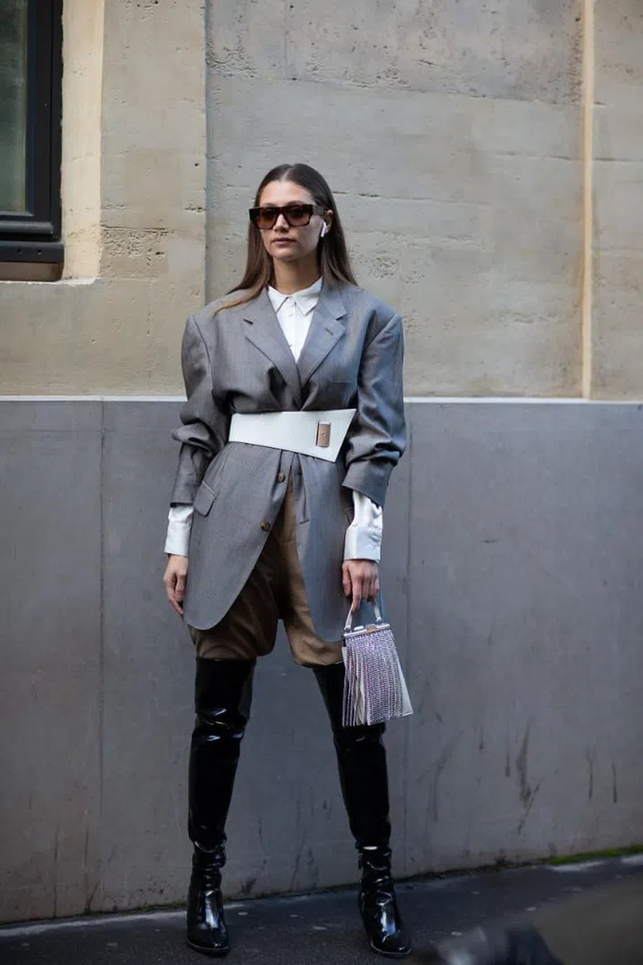 Give your outfit some shape and draw attention to your waist with a corset belt in a contrasting shade.