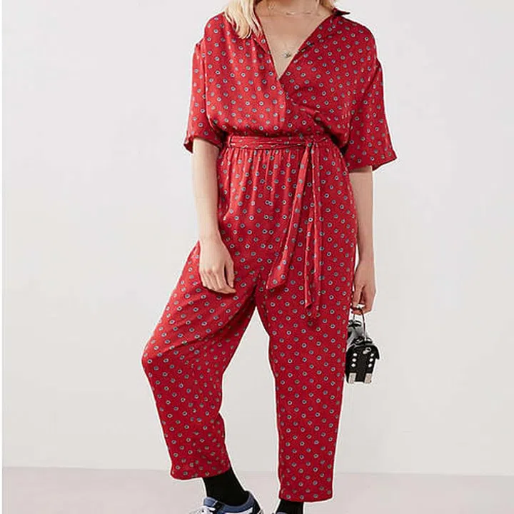 This vintage glam jumpsuit is the object of every lazy girl's desire with its luxe fabrication, relaxed-fit silhouette and fuss-free attitude. It’s made from Polyester - which means it’s practically wrinkle-resistant. In other words, you can sleep in this number AND wear it to work the next day.