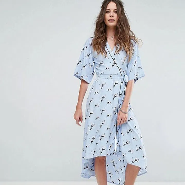 To exude impish girlishness, look to this wrap front dress with cute bird prints spotted left, right and centre. We’re loving the relaxed silhouette and kimono-styled sleeves that evidently scream “comfort”.