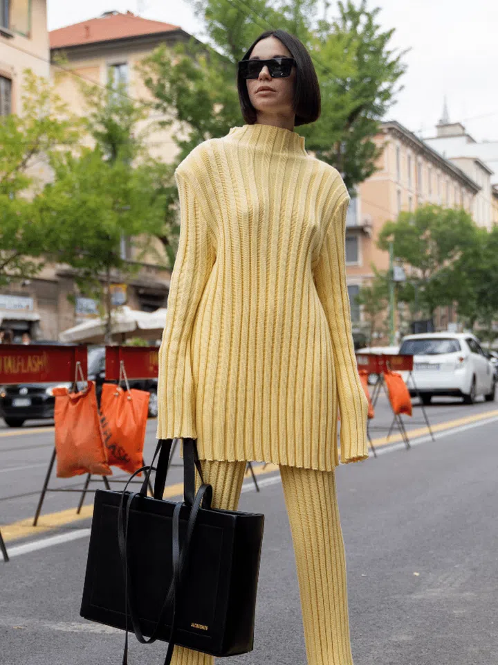 We love the comfort that a sweater affords us, so why stop at the top when you can take that comfort and apply it to the whole look! We’re seeing several high street brands like Zara and H&M putting their spin to the cool knit two-piece look, so you’re going to have no problems finding your fave twinset. Plus, having a matching top and bottom saves you some headspace when you’re deciding what to wear.