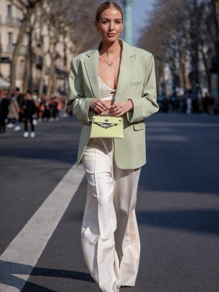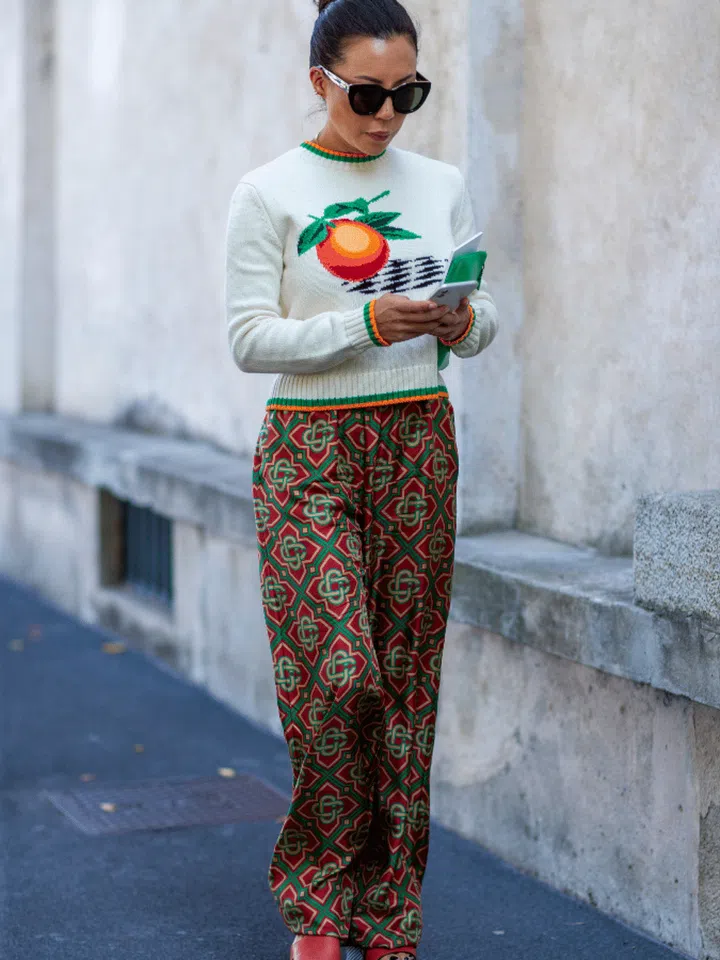 The matching pyjamas top and bottom may work for home but wearing it together when you’re headed out might draw comparisons to you forgetting to change before leaving the door. Instead, break up the set and wear them on their own with other things. We love the item of pyjama pants with a clingy knit or a tailored shirt, just as much as we adore pairing pyjama shirts with high-waisted wide-legged trousers. Remember: it’s all in the mix.