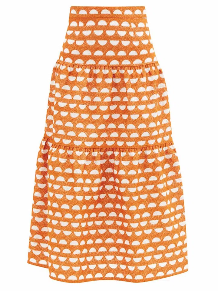 Orange Nineve Tiered Embroidered-Cotton Maxi Skirt, $726, Three Graces London