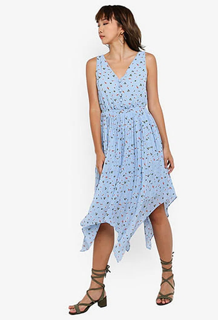 Shop similar: Something Borrowed Pleated Hankerchief Hem Swing Dress, $44.90, Zalora