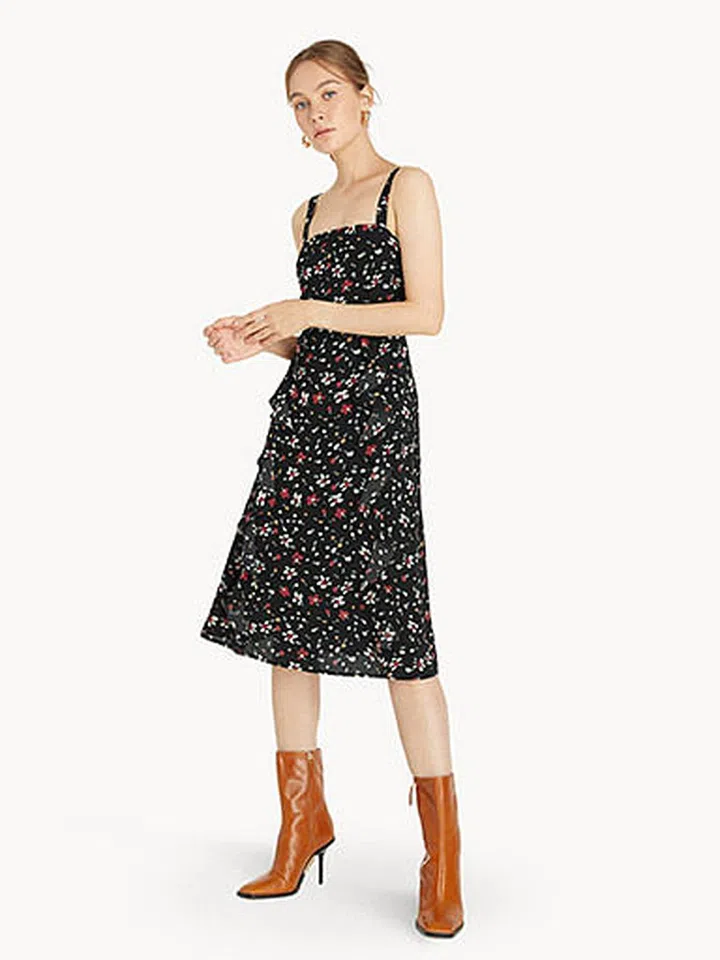 Shop similar: POMELO Floral Square Neck Frill Dress – Black, $49