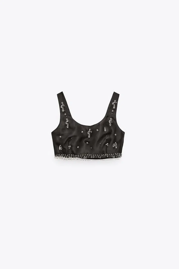 A pair of high-waisted trousers is hands down the most flattering pairing with a cropped top.