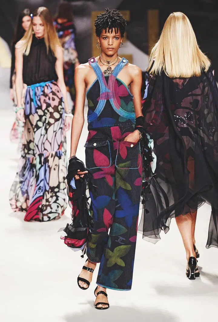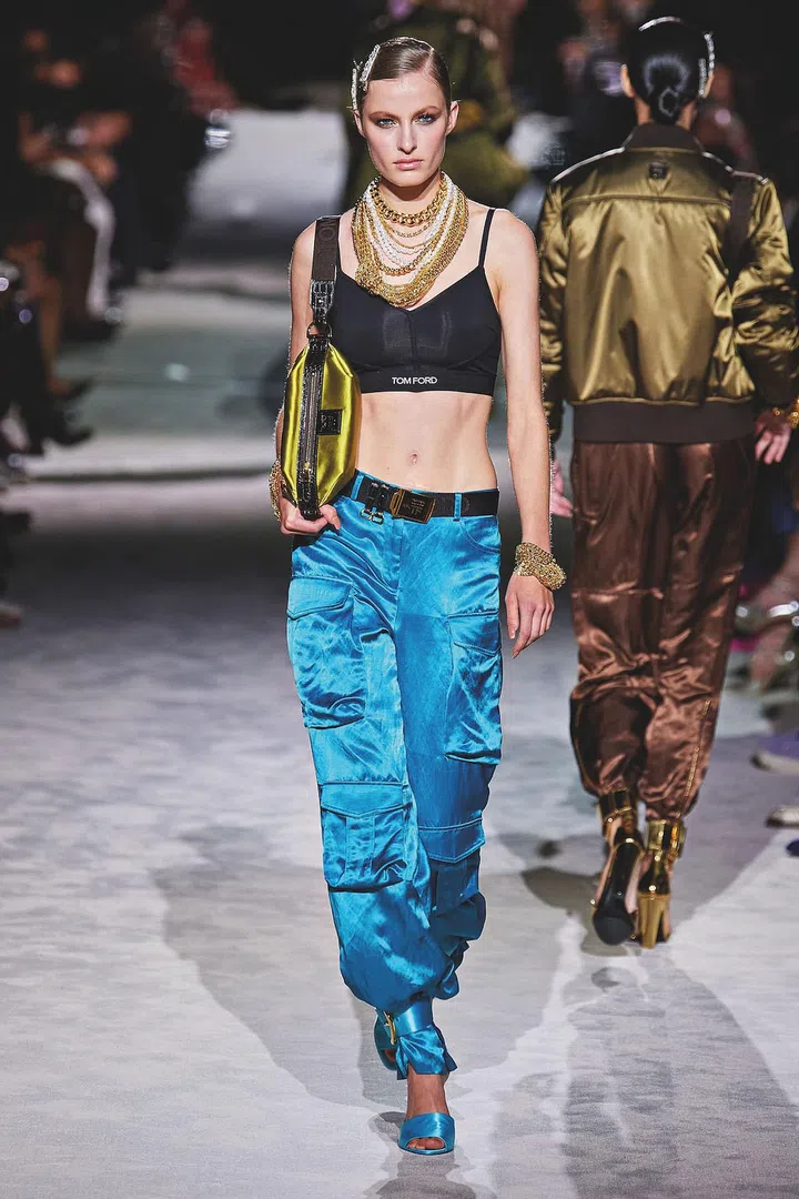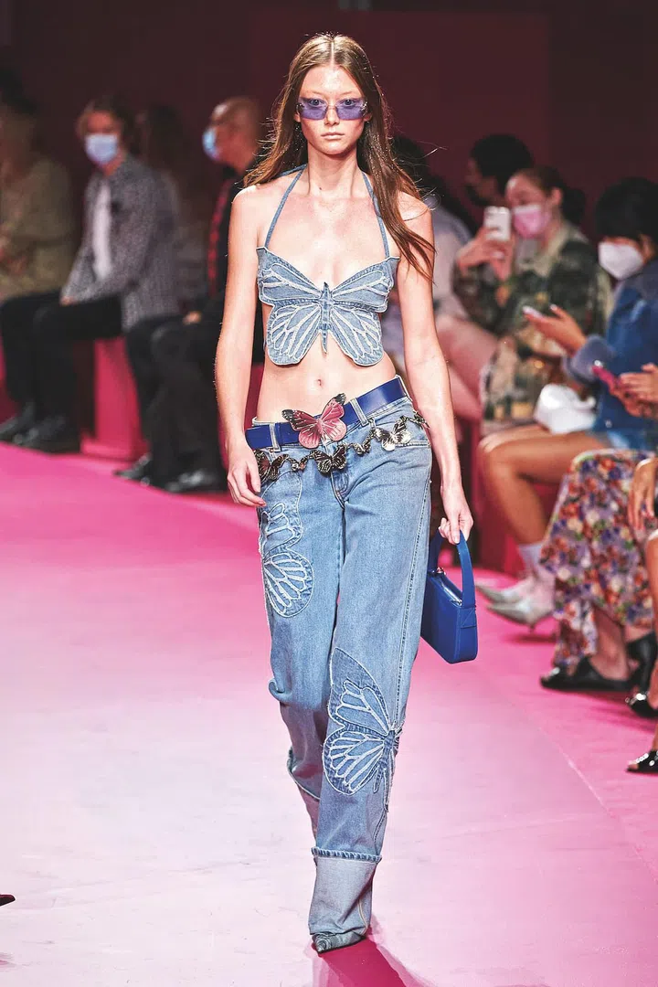 Cargo trousers paired with cropped tops made an appearance at Tom Ford, but nothing is more reminiscent of the early aughts than the butterfly motifs seen at Blumarine and Chanel. Mariah Carey would approve.