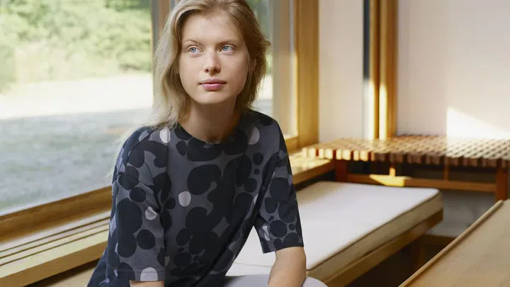 "I love everything with Maija Isola’s Kivet (stones) on it. That pattern captures a strong organic shape that manages to maintain its intrigue from one decade to the next. From this FW collection, I would also highlight the green and blue merino dress with the Lokki (seagull) print. I think it portrays the dialogue between a pattern and the garment beautifully." — Ms Minna