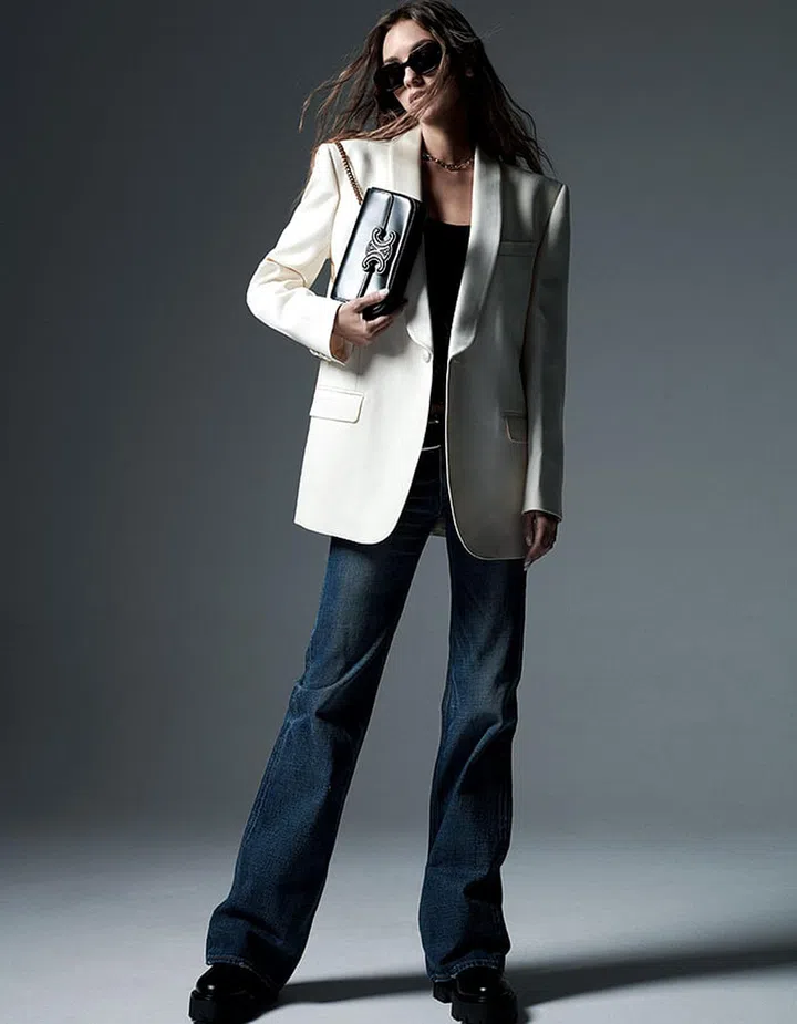 Gen Z might have declared skinny jeans over and low-waist jeans back, how about a compromise with mid-waist bootcut jeans? Not only are they universally flattering, a dark wash looks put together for a night out when paired with a tuxedo jacket.