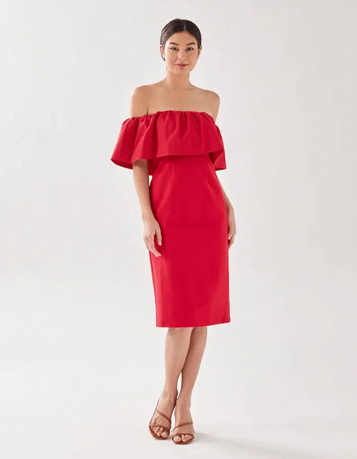 If your bridal party is assigned the colour red, then go for broke in this gorge off-shoulder midi dress from local label Love Bonito. After the partying is over, you can always take this dress out again for your next dinner and drinks night with the girls.