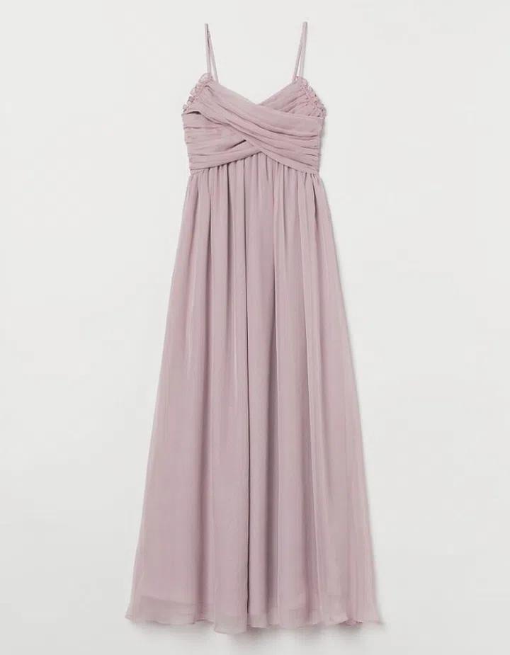 For a more muted dress option, try this one in a dusty shade of mauve. Then, post-nuptials, take it to the tailor and have it altered to a midi length, so you can wear it to the office underneath a white blazer.