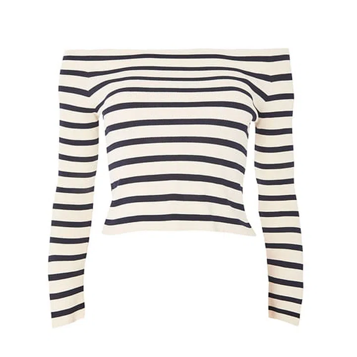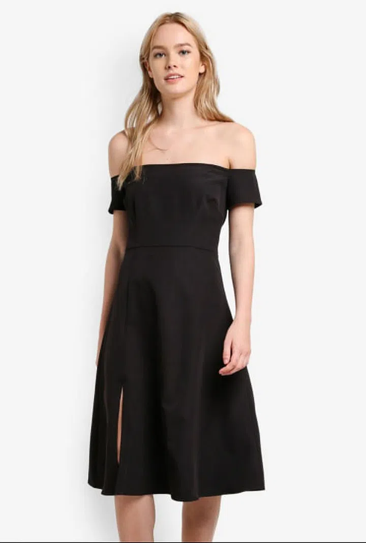 Mimic Victoria’s stylish and ultra ladylike outfit with this off shoulder number that features a slit at the front.