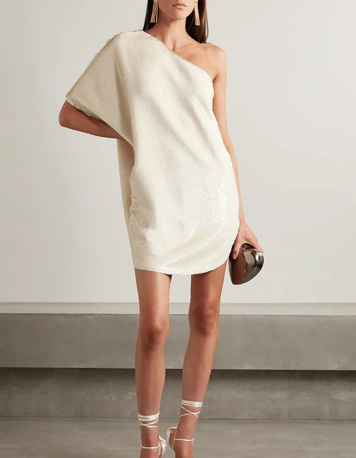 Unlike TikTok in 2021 – where suffocating yards of tulle and eye-searing neons ruled the day – the #fashiontok scene of today is very much on board with the quiet luxury trend. This one-shouldered mini ticks all the right boxes: elegantly cut, matte sequins don't demand flashiness, and perfect for an evening out.