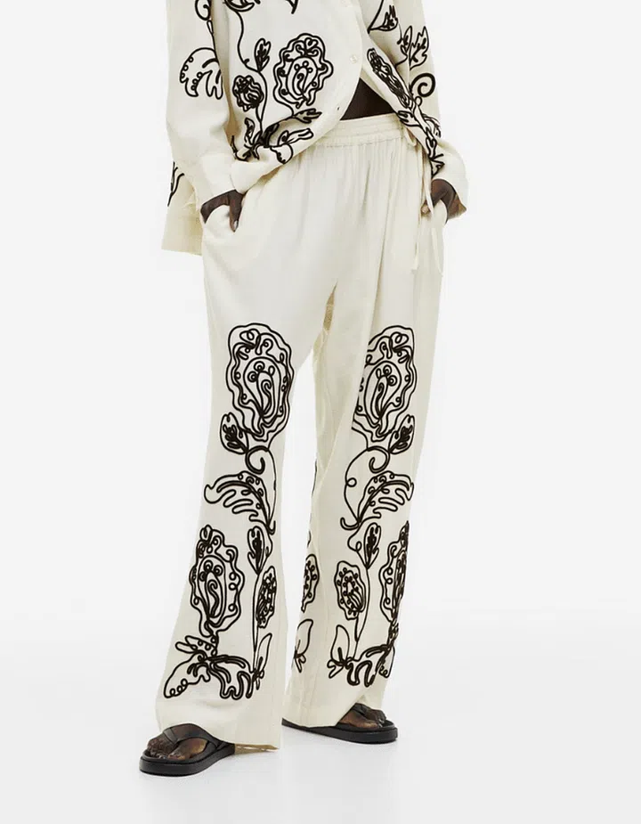 Yay for comfort! TikTokers have always been in love with their wide-legged pants pooling around their ankles, and that passion remains today. Our pick is this embroidered pair of trousers – just dressy enough without sacrificing comfort. A win for everyone!