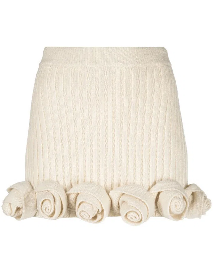 Floral-appliqué wool mini skirt, $725, Blumarine at Farfetch