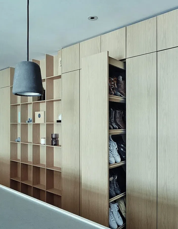 Although we tend to place shoes on the floor, it’s not ideal because the lower airflow means poor ventilation. After cleaning with every use, keep shoes elevated in a dedicated cabinet. For serious shoe lovers, apply leather conditioner once a month while airing them and then it’s best to keep them in their cloth dust bag or box.