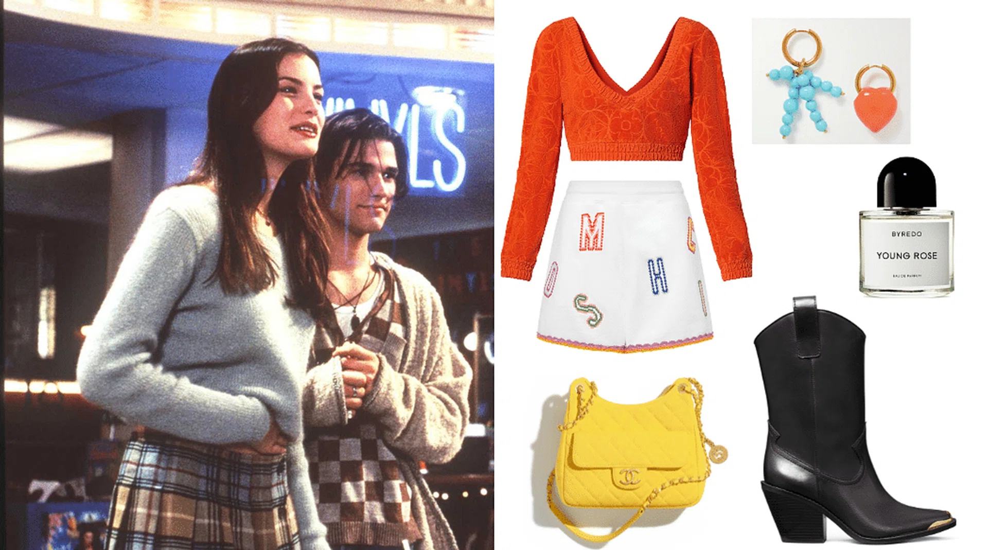 Miniskirts and cropped tops make up Liv Tyler’s signature look in this coming-of-age 1995 comedy-drama about a day in the life of a record store’s employees. Complete the look with regular lace-up boots or the more trendy Western-style boots.