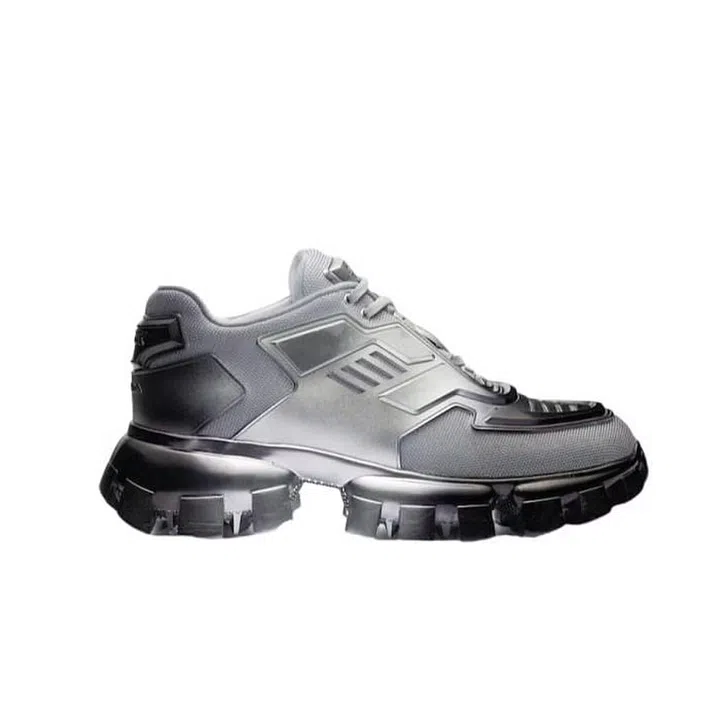 The well-loved chunky sneakers from Prada gets a futuristic facelift with silver and black airbrushing for that Robocop-meets-fashion feel.
