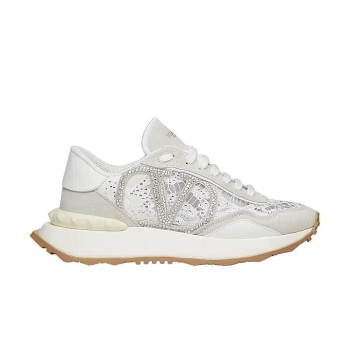 Athleisure meets grown-up elegance, with lace inserts and crystal appliques.