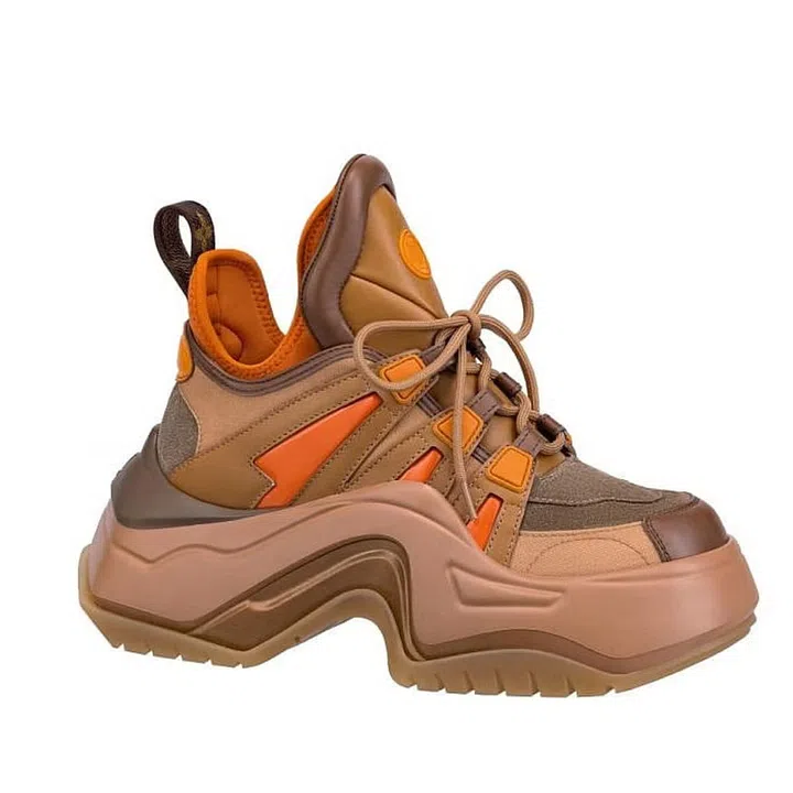 The iconic Archlight sneaker from the maison gets an update with oversized rubber outsoles, and draws upon hiking boots to inspire its melange of brown and orange tones.