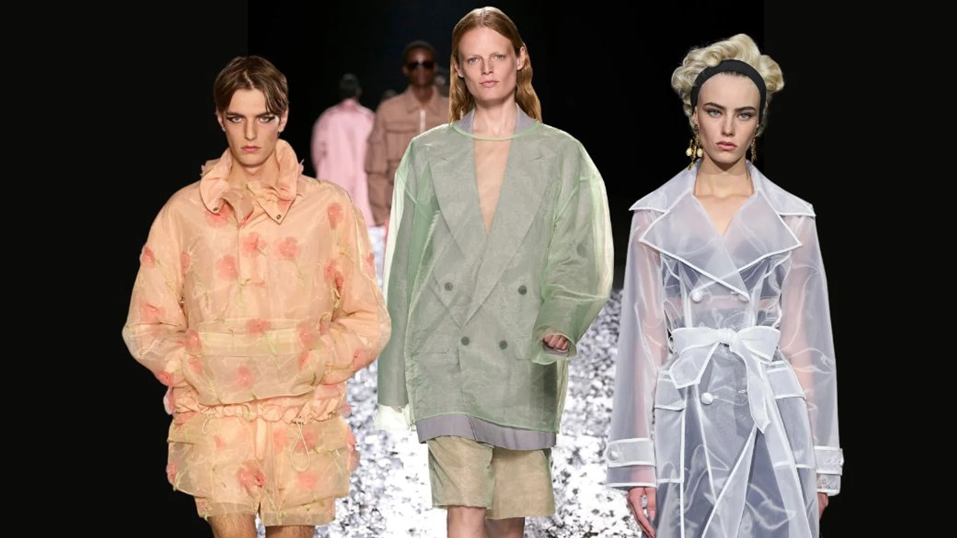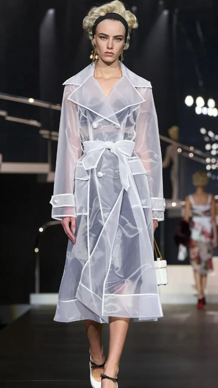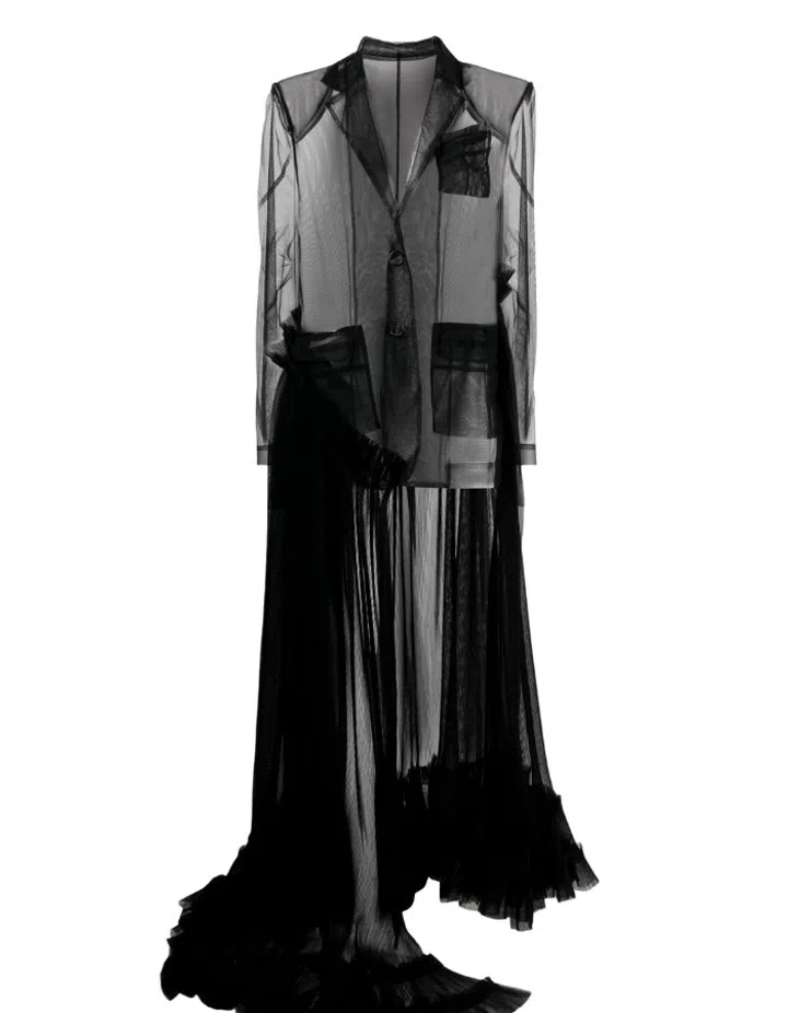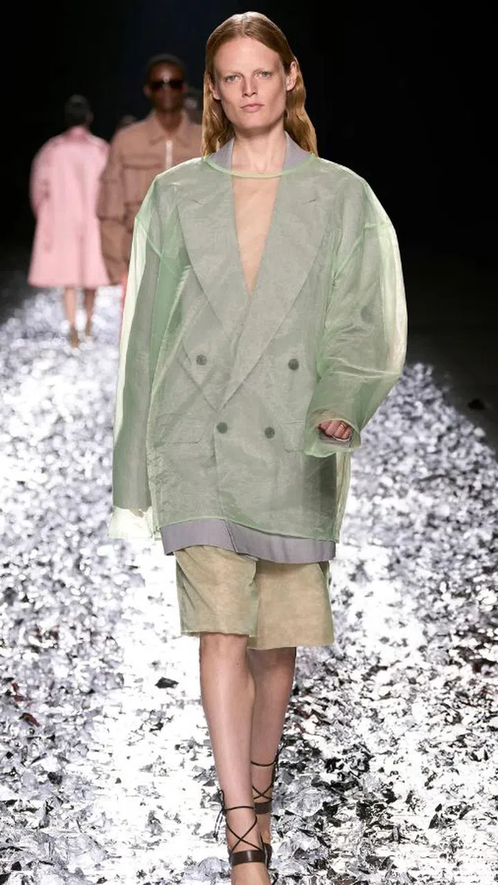 This spring/summer 2025 season, designers continue to use tulle in a less conventional form — infusing menswear tailoring sensibilities such as the oversized green tulle double-breasted blazer at Dries van Noten and a trench coat-inspired look at Dolce & Gabbana.