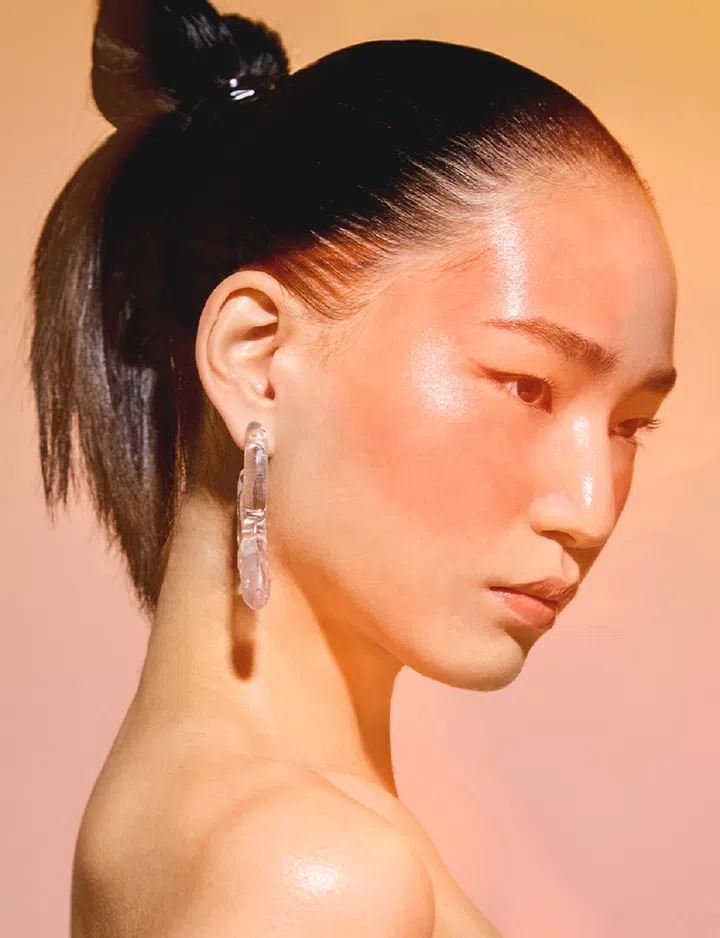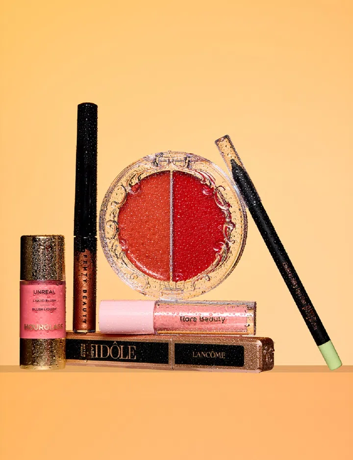 Instead of reaching for heavy matte formulas, enliven your complexion and lighten up your warm-weather makeup look with sheer, watery formulas such as the Hourglass Unreal Liquid Blush, $59, to let your natural skin peek through. Meanwhile, KVD Beauty Good Apple Blush Balm, $52, has a creamy consistency that blends seamlessly into the skin to deliver a glowy, lit-from-within flow.