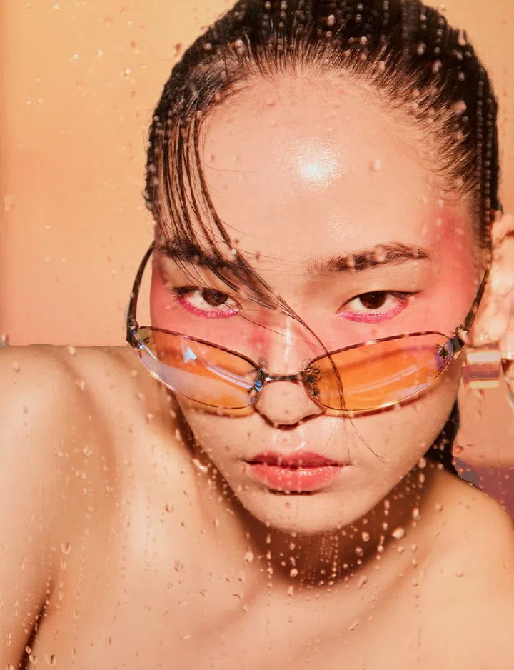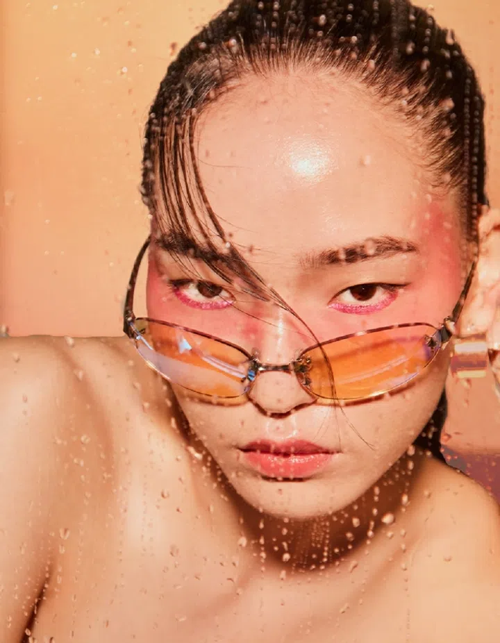 Add a modern twist to the classic winged liner look with a stroke of glittery pink eyeliner on the bottom lash line. You can keep the rest of your makeup simple and bare, or go bold with oversaturated cheeks. Pro tip: Lock everything in place with a spritz of setting mist.