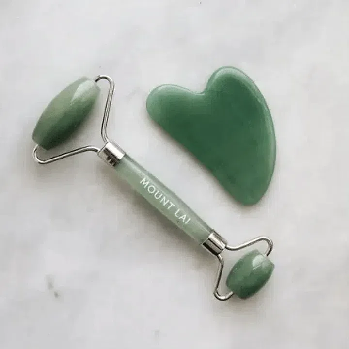 One of the best ways to reduce water retention in a puffy face, is to massage it with your fingers or with a gua sha and jade roller. Jade is a naturally has a cooling effect which feels soothing on puffy skin. The jade roller offers a gentle and relaxing massage as you roll it from the centre of the face out towards the contours thus helping to improve circulation. For a more intense massage, go in with the jade gua sha. Keeping the tool at a 45-degree pull it upward and outward to stimulate lymphatic drainage.