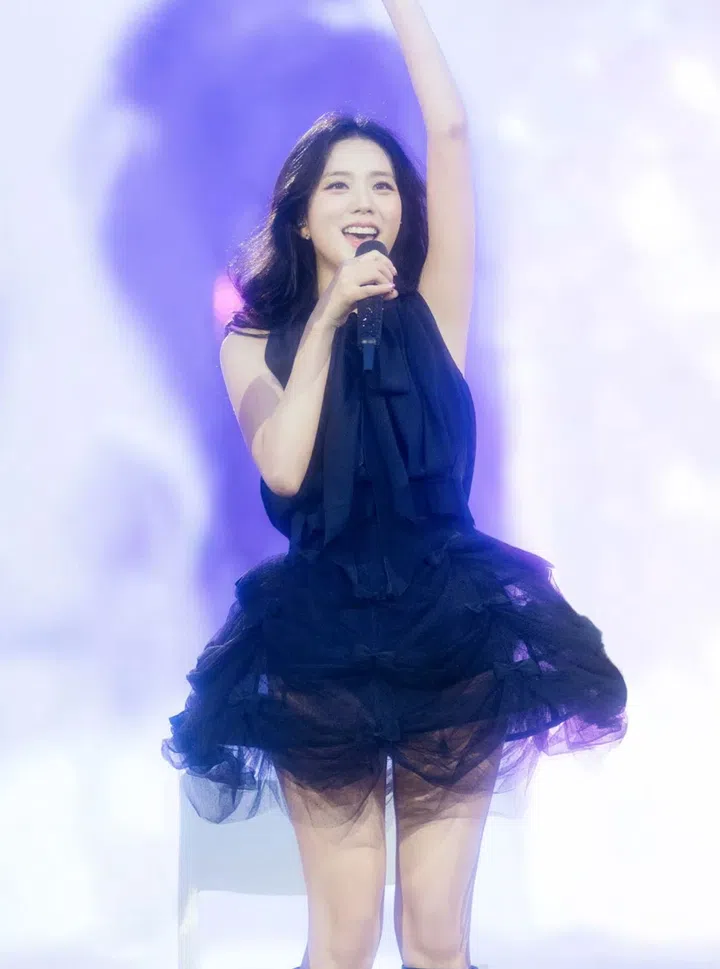 The fit: Jisoo wears a custom Tommy Hilfiger look: two piece argyle with crystal embellishments.