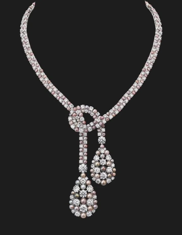For those seeking red carpet level jewellery that still embraces modern sensibilities, the high jewellery creations from Chaumet will meet your brief. Drawing upon the French maison’s deeprooted pearl tradition, their negligee necklace is a masterclass in virtuosity and style. The Trompel’oeil design, where diamonds are set to mimic fabric, is breathtakingly elegant, a testament to their expert craftsmanship. Natural button pearls are meticulously placed, their varying diameters and heights creating a harmonious visual flow, while the design echoes a 1913 creation that the Maharaja of Indore once wore with two extraordinary pear-shaped diamonds.